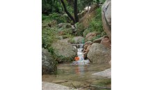 北九水以其麗山秀水繪就的優(yōu)美畫廊,馳名中外。嶗頂源泉之水從海拔1100多 米的高峰順勢(shì)而下,中途又匯集了眾多的溪流,凌空瀉入靛缸灣,又從靛缸灣溢出,沿著長長的深山峽谷,彎彎曲曲,時(shí)急時(shí)緩,時(shí)聚時(shí)散,奔騰而下。這樣一來,再配以兩側(cè)群峰聳峙,禽鳥啼鳴,奇光薈萃,綠樹成蔭,山與水相互纏繞,形成了一步一景、一灣一色的瑰麗畫廊風(fēng)光。