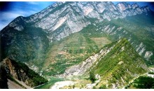 果子溝全長(zhǎng)28公里,沿著烏─伊公路的大致走向,就是新疆古絲綢之路的北道。松樹(shù)頭,是果子溝的絕頂之處,北下直達(dá)賽里木湖畔,南下直入果子溝峽谷。賽里木湖,亦稱(chēng)三臺(tái)海子,與果子溝唇齒相依,亦為新疆名勝之一。由松樹(shù)頭南下二臺(tái)林場(chǎng),山路盤(pán)旋崎嶇,一落幽谷,是果子溝的險(xiǎn)峻之處。落谷傍山,有一高山瀑布凌 空奔瀉而下,狀如白練懸空,壯觀(guān)異常。
