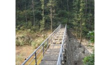 石船或曰船石,在白云崖下澗溝中,石長20余米左右,寬、高均在10米左右,船首、船身、船尾、船倉,輪廓畢具,線條分明;似經(jīng)起重機吊起,有意墊放幾塊小石于其下,淙淙泉水自船底流過,欲濕不濕;船頭高翹,氣宇軒昂;船前溝壑陡落千丈,大有潮生即發(fā),直瀉江河之勢。