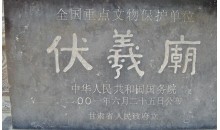 伏羲廟本名太昊宮,俗稱人宗廟,在甘肅省天水市城區(qū)西關(guān)伏羲路。一九六三年人民政府公布為甘肅省重點(diǎn)文物保護(hù)單位。伏羲廟臨街而建,院落重重相套,四進(jìn)四院,宏闊幽深。廟內(nèi)古建筑包括戲樓、牌坊、大門、儀門、先天殿、太極殿、鐘樓、鼓樓、來鶴廳共10座;新建筑有朝房、碑廊、展覽廳等共6座。新舊建筑共計(jì)76間。整個(gè)建筑群坐北朝南。牌坊、大門、儀門、先天殿、太極殿沿縱軸線依次排列,層層推進(jìn),莊嚴(yán)雄偉。