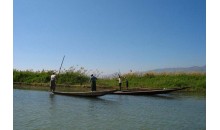 茵萊湖位于緬甸北部撣邦高原的良瑞盆地上,為緬甸第二大湖,緬甸著名的游覽避暑勝地。湖面海拔970多米,南北長14.5公里,東西寬6.44公里,三面環(huán)山,來自東、北、西三面的溪流注入湖中,向南匯入薩爾溫江。湖水清澈,陽光直射湖底。湖中生活著20多種魚,有豐富的水產資源。