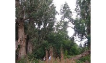 阿克蘇向北,過溫宿縣城后,再向西北行60公里,穿越一大片戈壁灘,一個崗巒起伏的小綠洲便展現(xiàn)面前。這個小綠洲,不是處在地勢低洼處,而是位于坡度平緩的崗阜上,海拔為1700米左右,面積僅0.4平方公里,但卻是郁郁蔥蔥,濃蔭覆蓋,流水潺潺,蜂飛蝶舞,堪稱人間仙景。當?shù)胤Q它為“怪樹園”。被稱之為“圣水泉”的一汪清泉在綠洲頂部,涓涓細流,滋潤著這塊綠洲。