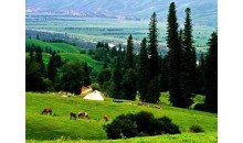 金絲特避暑山莊,位于新疆庫爾勒市和碩縣北紅山地帶那音克鄉(xiāng)的一個水草豐美的山間小盆地里。沿著崎嶇的山路前40公里左右,就可到達(dá)。這里草地如毯、牛羊成群、喇嘛調(diào)悠揚(yáng)深遠(yuǎn);揚(yáng)鞭縱馬,如入人間仙境。在這里,游人還可以盡情地感受到和碩特蒙古人古樸而濃烈的風(fēng)情。一年一度的那達(dá)慕盛會更是熱鬧非凡,有醇香的奶酒、鮮美的手抓肉,還有古老悠揚(yáng)的沙吾爾登彈唱,夏日有日吾爾賓館接待游人。