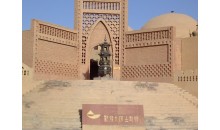 大漠土藝館文位于新疆吐魯番火焰山下。煙云繚繞的火焰山下,郁郁蔥蔥的木頭溝河畔,一座規(guī)模宏大的人文景觀以其獨特的藝術風格,屹立在312國道西側,它就是1991年5月對外開放接待游人的新疆火焰山大漠土藝館,地理坐標89°32″7′,42°56″8′,海拔140米。這里是火焰山腹地的五百羅漢谷,是佛光寶地。眾所周知,自古名山僧占多,火焰山也不例外,著名的佛教遺址--柏孜克里克千佛洞就開鑿在此谷。