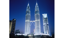吉隆坡石油雙塔坐落于吉隆坡市中市(Kuala Lumpur city centre) 簡稱KLCC計(jì)劃區(qū)的西北角,屬于此計(jì)劃區(qū)的第一階段工程。曾經(jīng)是世界最高的摩天大樓,直到2003年10月17日被臺(tái)北101超越,但仍是目前世界最高的雙塔樓,也是世界第四高的大樓。