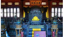 在麗正門北,是避暑山莊正殿。此殿規(guī)模宏大,殿前有外、內午門,朝房、樂亭,后有四知書屋、寢宮等 建筑。內午門為清帝每年到承德木蘭圍場進行秋獵時舉行小型閱射之所,門上懸有康熙我御書“避暑山莊”四字匾額,東西兩壁是乾隆御制《閱射六韻》詩刻石。殿建于清康熙四十九年(1710),乾隆十九(1754)全部用楠木改修,故又稱楠木殿。面闊7間,單檐卷棚歇山頂。