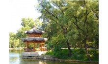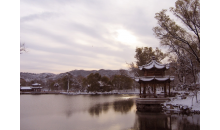 南山積雪亭位于山莊正北、青楓綠嶼南側的山頂上,是一處借景之作,為“康熙三十六景”第十三景。是山莊的制高點之一。 南山積雪亭為方形四角攢尖式敞亭,面積較大,在此可一覽眾峰。“南山積雪”是觀賞山莊初冬雪景為命題的一組苑景。塞北高寒,山莊之南,峰嶺環(huán)列,嶺上積雪經久不消。登亭遙望,群山上的積雪“皓潔凝映,晴日朝鮮,瓊瑤失素”。直到初春時節(jié),仍是“不改冰霜積雪冬”的景象。
