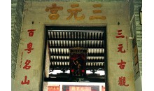 廣州三元宮是嶺南現(xiàn)存歷史較長(zhǎng)、規(guī)模較大的道教建筑。據(jù)史書記載為東晉時(shí)南海太守鮑靚所建,明代萬歷年間重修時(shí)始稱三元宮。三元宮坐北朝南,在越秀山南麓,依山而建,漸次升高,現(xiàn)存各殿堂建筑總面積約2000平方米,布局以正對(duì)山門的三元殿為中心,殿前拜廊,東西連鐘鼓樓。大殿后為老群殿,大殿兩側(cè)自南向北,東側(cè)為客堂、齋堂、舊祖堂、呂祖殿;西側(cè)缽堂、新祖堂、鮑姑殿等建筑。