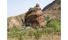 巴林左旗召?gòu)R位于內(nèi)蒙古自治區(qū)赤峰市巴林左旗林東鎮(zhèn)南15公里處 ,當(dāng)?shù)厝艘步袑毟襁_(dá)召或阿貴圖廟(蒙語譯音)。召?gòu)R始建于遼王朝,占地面積1023.35畝,由石窟和外殿兩部分組成,石窟開鑿于遼代,史稱——真寂之寺,外殿建于清代,名為善福寺(前殿)及千佛殿,是內(nèi)蒙古自治區(qū)級(jí)重點(diǎn)文物保護(hù)單位。