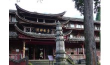 峨眉山圣水禪院原名神水庵、神水閣,有五重殿宇,全寺的殿堂和附屬房屋全系木制結(jié)構(gòu)。禪院原為明代安慶巡撫吳用先的舊居,因周?chē)靶拗袢f(wàn)竿”,有“水竹色相繞,碧花動(dòng)軒楹”(唐,孟郊 《旅次洛城東水亭》)的意境,取名“水竹居”。明萬(wàn)歷末年(約公元1619年),因水竹居前有“玉液”神水,遂改宅為寺,名“神水庵”。寺院前有一塔,傳為隋代智者大師衣缽塔。