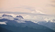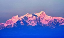 干城章嘉峰(Kangchenjunga,也常寫為Kanchenjunga),又叫“金城章嘉峰”、“康章忠格峰”,峰名Kanchenjunga原出藏語(yǔ)的四個(gè)字,通常翻譯為Kang-chen-dzo-nga或Yang-chhen-dzo-nga,在藏語(yǔ)和錫金語(yǔ)中的意思是“雪中五寶”,這從它有五個(gè)峰頂而得來(lái)的,并且其中四個(gè)峰頂?shù)暮0卧?400米以上。