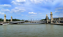 亞歷山大三世橋(Pont Alexandre III)于1900年落成,全長(zhǎng)107米的橋身由一個(gè)橋拱組成,橋身較低是為了不影響香榭麗舍和榮軍院的視野。