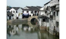 史載于1086年的古鎮(zhèn)周莊,位于上海、蘇州、杭州之間。鎮(zhèn)為澤國,四面環(huán)水,咫尺往來,皆須舟楫。全鎮(zhèn)依河成街,橋街相連,深宅大院,重脊高檐,河埠廊坊,過街騎樓,穿竹石欄,臨河水閣,一派古樸幽靜,是江南典型的小橋流水人家。