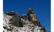 八寶云光洞位于龍井頂前懷的一塊平地上,此處風(fēng)景十分幽靜,西依—條小溪,北靠參差交錯的巖石和松柏,東臨深澗,南有浩渺的大海,春夏季節(jié),從山的南麓遠(yuǎn)望,可見漫山云霧翻滾,猶如狂濤襲來。云光洞處曾建有幾座廟宇,名為延壽宮,為金代所建,它前臨深谷,后背云光渦,景色十分秀麗,古人曾形容這里“懸榻低云樹,開窗近半星”,置身其間,使人有進(jìn)入洞天福地之感,可惜,樸素典雅的延壽宮毀于戰(zhàn)火,只留下斷壁殘垣。