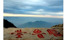 探海石,是位于岱頂?shù)囊粔K突兀伸出的怪石,其上可觀云海玉盤奇景。夏天,雨后初晴,大量水蒸氣蒸發(fā)上升,加之夏季從海上吹來(lái)的暖溫空氣被高壓氣流控制在海拔 1500米左右的高度時(shí),如果無(wú)風(fēng),在岱頂就會(huì)看見(jiàn)白云平鋪萬(wàn)里,猶如一個(gè)巨大的玉盤懸浮在天地之間。遠(yuǎn)處的群山全被云霧吞沒(méi),只有幾座山頭露出云端;近處游人踏云駕霧,仿佛來(lái)到了天外。