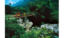 九畹溪漂流景區(qū)山峻水清,民風(fēng)淳樸,集探險(xiǎn)、休閑、觀光為一體,以奇山、秀水、絕壁、怪石、名花而聞名。是國(guó)家體育總局授牌的“國(guó)家漂流訓(xùn)練基地”。景區(qū)以激情、運(yùn)動(dòng)、健康為主題,“男人一路歡笑,女人一路尖叫”是游客最切身的快樂(lè)體驗(yàn),被中外游客譽(yù)為“中華第一漂”。