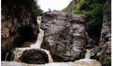 胭脂峽位于涇源縣城東北8千米的黃花鄉(xiāng)羊槽村東側(cè),東臨崆峒山,西接六盤山,南與老龍?zhí)断嗤瑣{谷全長45千米,形成于8億年前的奧陶紀(jì)。“胭脂”一名是由春秋時代在這里繁衍生息過的少數(shù)民族“焉支氏”、“焉支”部落演化而來的。