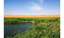 騰格里沙漠月亮湖旅游區(qū) 位于中國(guó)內(nèi)蒙古阿拉善盟境內(nèi)騰格里沙漠腹地,月亮湖是距離國(guó)內(nèi)各大城市半徑最短的沙漠探險(xiǎn)營(yíng)地,是現(xiàn)代都市人尋求緊張競(jìng)爭(zhēng)生活之外的驚險(xiǎn)刺激與徹底放松身心的最佳游程。月亮湖有三個(gè)獨(dú)特之處:一是形狀酷似中國(guó)地圖:站在高處沙丘一看,一幅完整的中國(guó)地圖展現(xiàn)在眼前,蘆葦?shù)姆植几菍⒏魇^(qū)一一標(biāo)明;二是湖水天然藥浴配方:面積三平方公里的湖水,富含鉀鹽、錳鹽、少量硭硝、天然蘇打、天然堿、氧化鐵及其它微量元素,與國(guó)際保健機(jī)構(gòu)推薦藥浴配方極其相似。