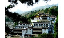 陰山古剎規(guī)模并不很大,只有三數(shù)殿宇,但建筑精巧玲瓏,金碧輝煌。大殿建于方整的臺基上,樓高兩層,飛檐微翹;紅柱回廊,柱頭雕飾彩繪精美。殿門兩旁有壁畫圖案,殿內(nèi)的壁畫更琳瑯滿目,墻壁、楝梁、布幔,都有絢麗的彩繪,色澤鮮明,經(jīng)久不變。題材除佛教故事人物以外,還有鳥獸花卉,生動多姿。